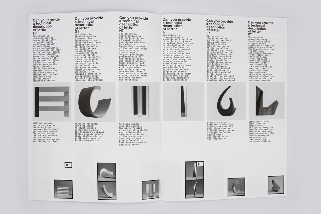 Bored Board 002 explores this idea by approaching letters from scratch with the help of machines. Treated as unfamiliar objects rather than language symbols, how might machines describe letters as physical entities? What would their analogies look like?